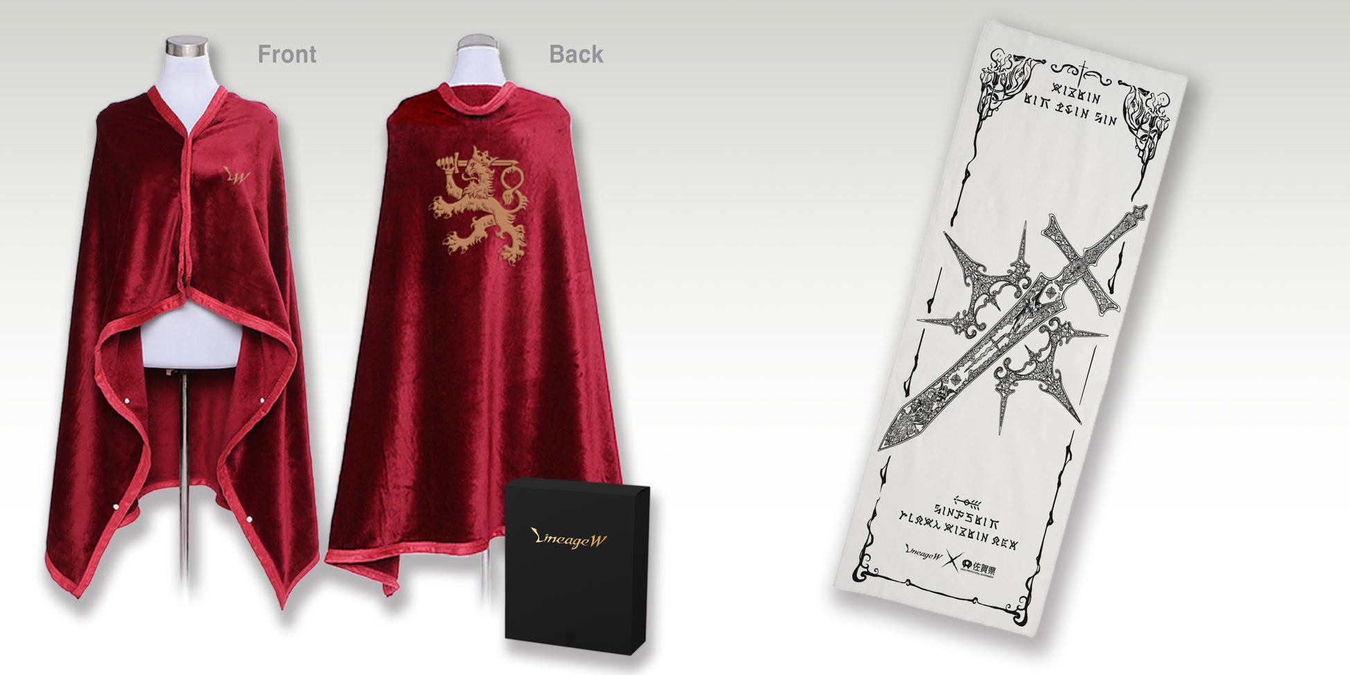 君主風マント(先着70名様)、手ぬぐい 「リネージュW × SAGA Edition 強化の巻物」 、「リネージュW」仕様長袖Tシャツ