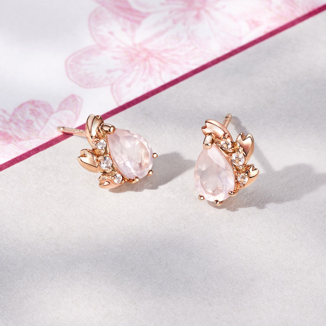K18PG Pierced Earrings / Rose Quartz / White Topaz ¥74,800