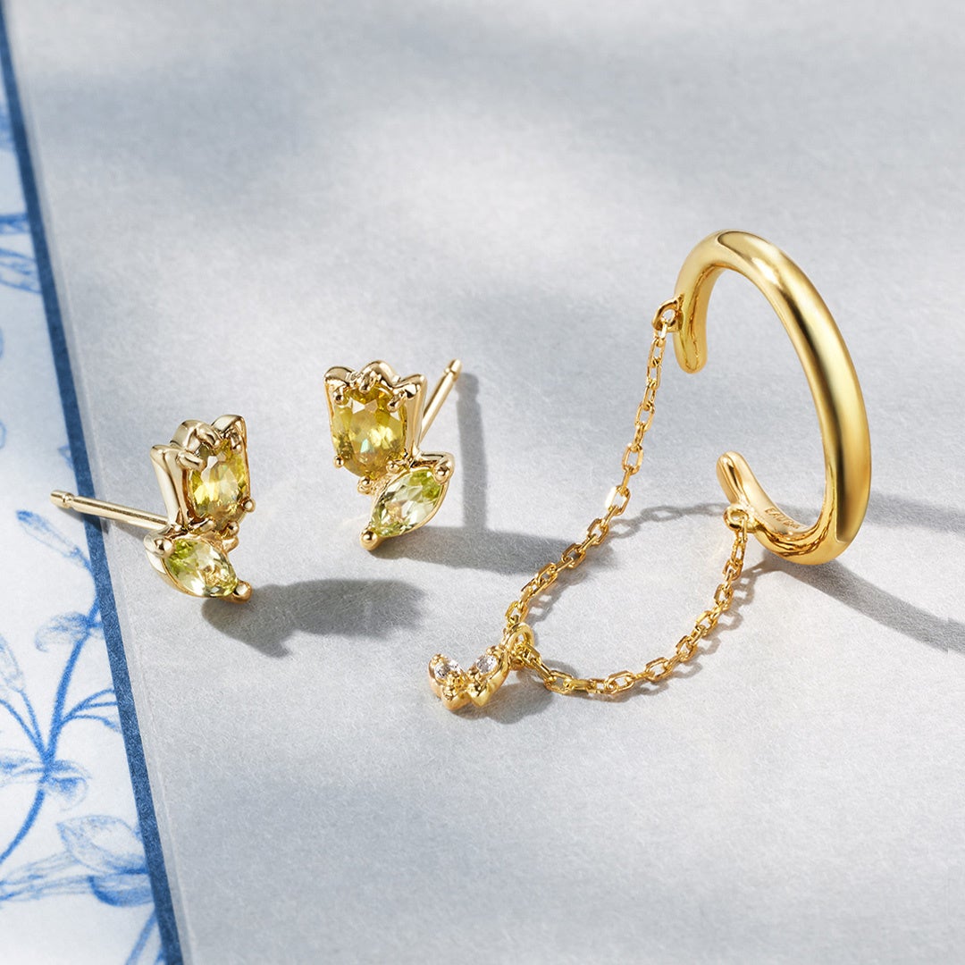 K10YG+SV(YGc) Pierced Earrings + Ear Cuff set / Sphene / Peridot / White Topaz ¥48,400