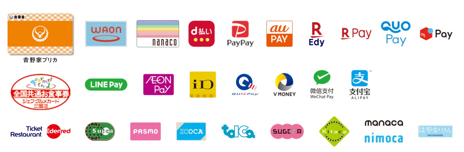 「吉野家」で利用可能な電子決済サービス(今回導入したブランド以外)