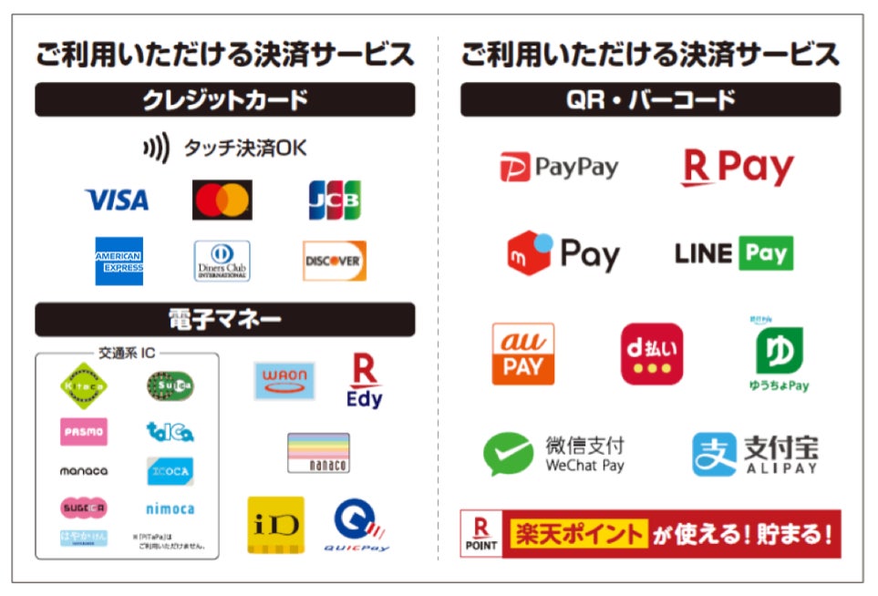 この度導入したのは、Visa/Mastercard/JCB/American Express/Diners Club/Discoverのクレジットカード、デビットカード、プリペイドカードです。一部タッチ決済にも対応します。決済手段を拡充することで、お客様の利便性を高め、利用機会を促進します。また、国際ブランドのサービスを導入することで、インバウンド需要の拡大も図ります。