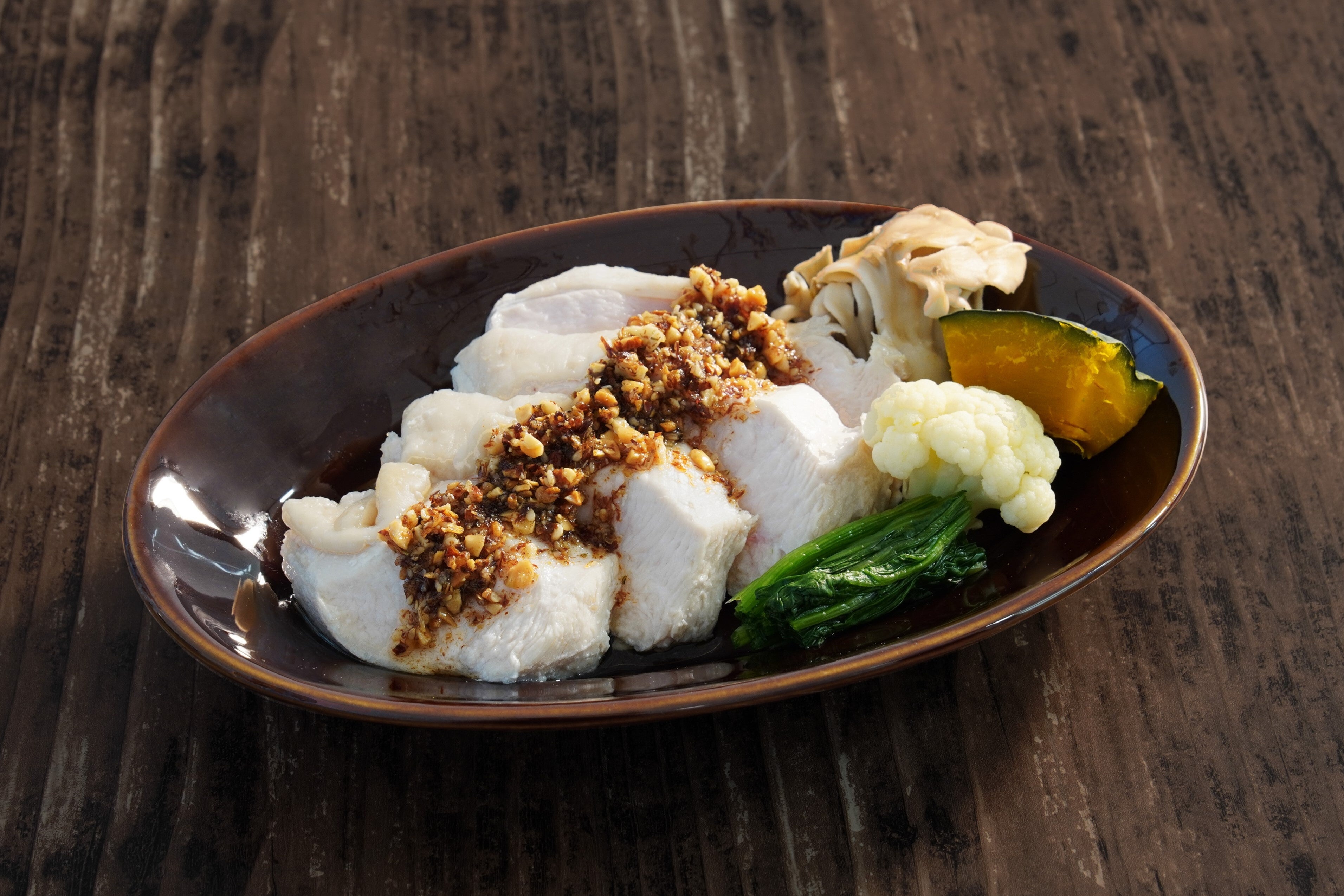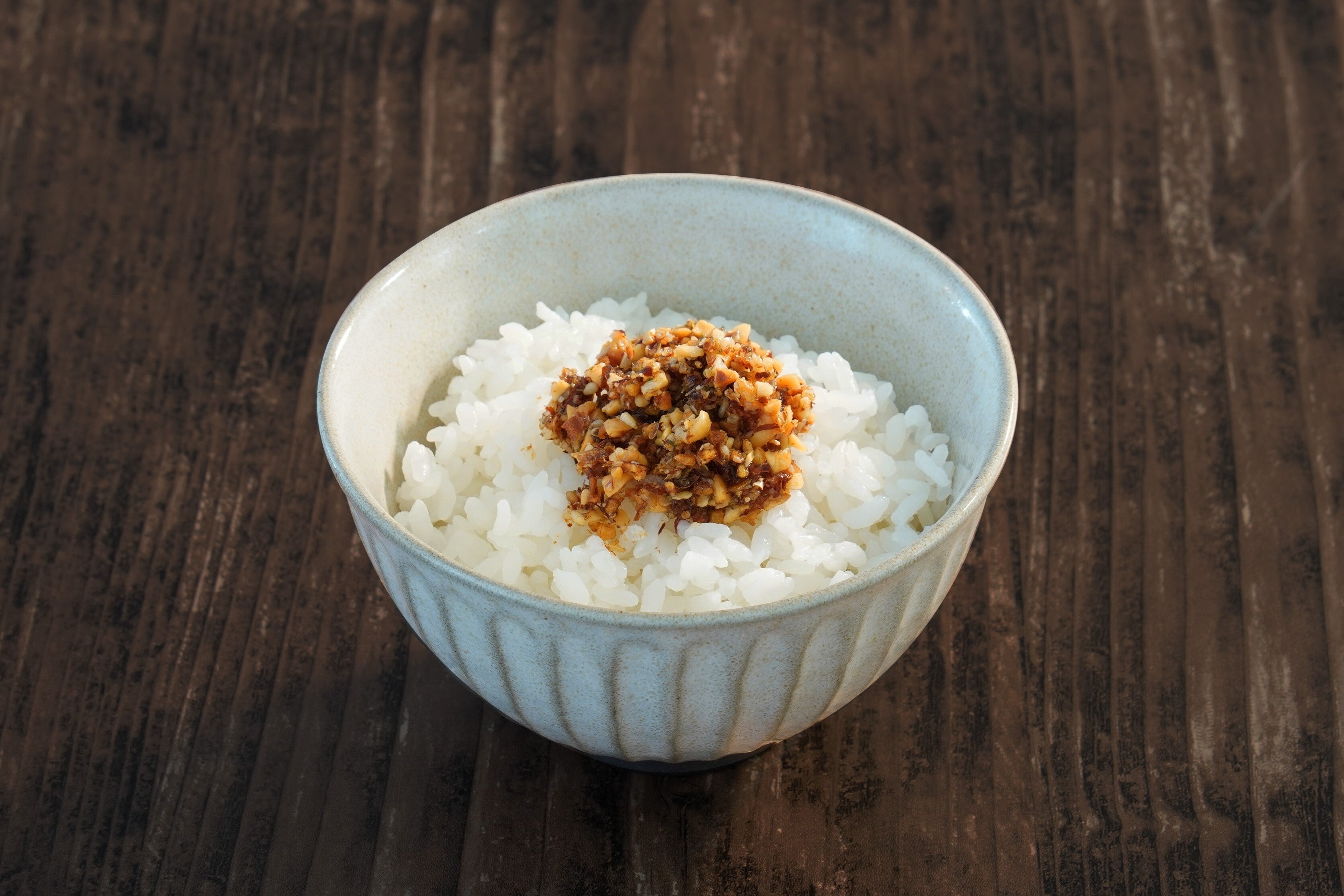 鰹節の美味しさをそのままに醤油で香り高く仕上げたジューシーなおかかと、ピーナッツ・アーモンド・カシューナッツの三種のナッツの食感が楽しい和風ナッツソースです。フライドガーリックの旨みと上品なごま油の香りがアクセントとなり、食欲をそそります。ご飯やパン、お肉や温野菜など和洋様々なお料理にお使いいただけます。