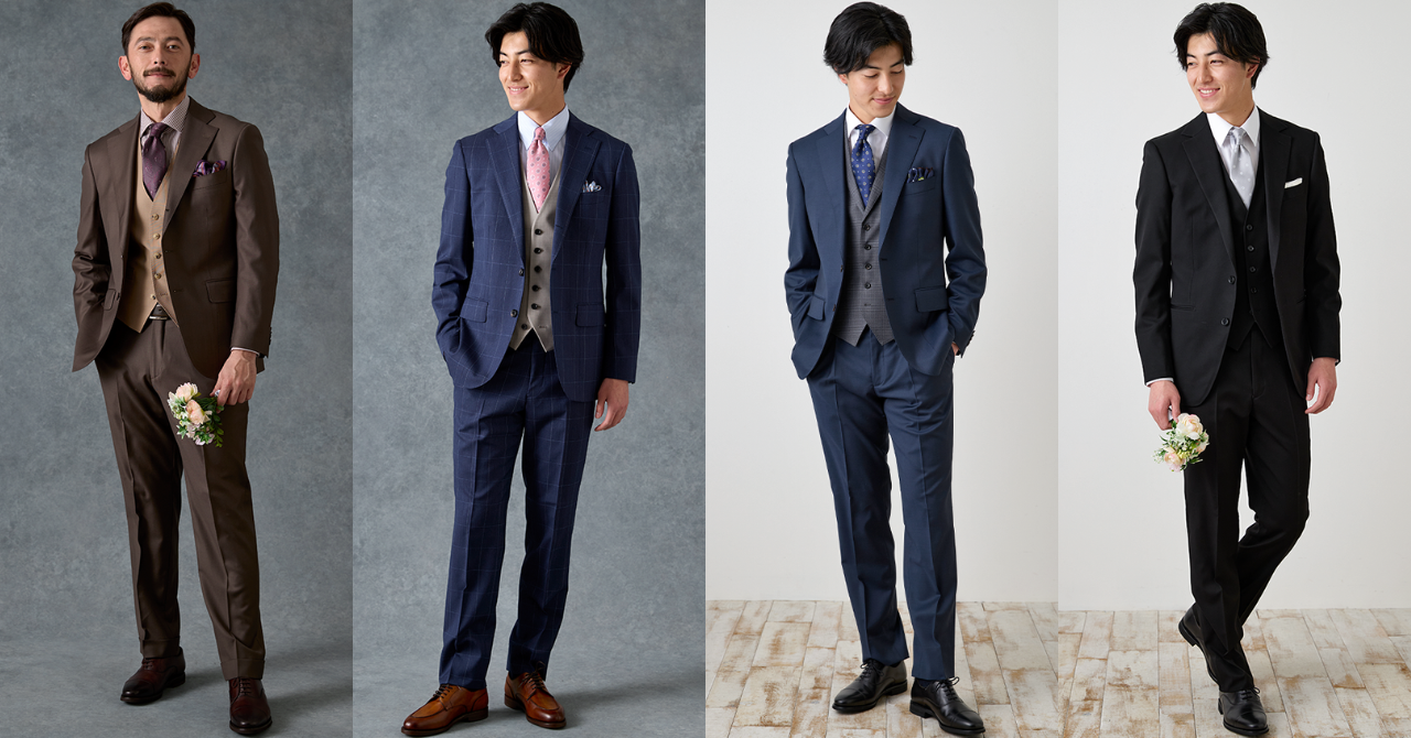 結婚式参列シーンのスーツにはいくつか種類があり、出席する立場で着こなしが異なります。主役より目立ちすぎないことを意識し、周りに与えるイメージを考えながらスーツを選ぶとよいでしょう。