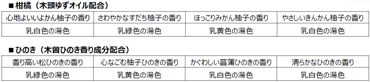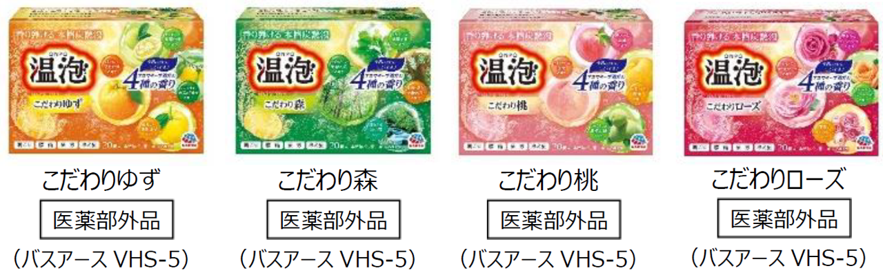 販売名:①バスアースULH-5(心地よいいよかん柚子の香り、さわやかなすだちの柚子の香り、ほっこりみかん柚子の香り、やさしいきんかん柚子の香り)