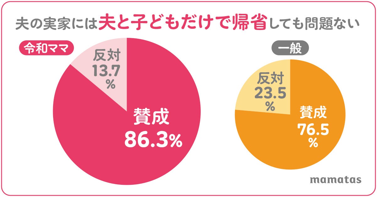 - 夫の実家へは夫と子どもだけで帰省をしても問題ないと考える令和ママは86.3%