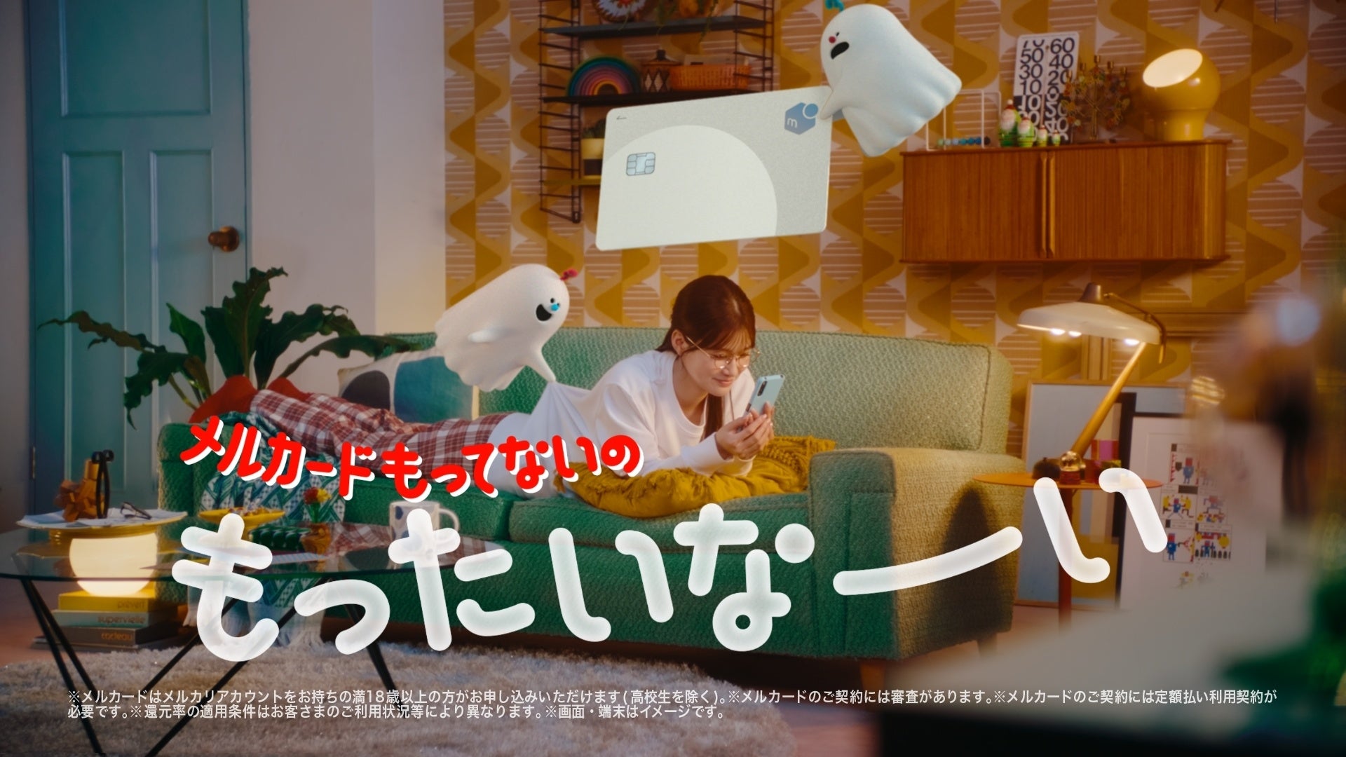 キャンペーン実施に伴い、2024年10月23日より生見愛瑠さん出演の新CM『メルカード「もってないともったいない」篇』を公開いたします。生見愛瑠さんがメルカリアプリを開くとおばけのキャラクターが部屋に出現し、生見愛瑠さんの服を引っ張りながら「メルカリしてるのにメルカードもってないのもったいない!」と呼びかけます。