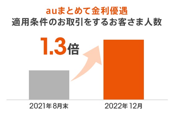 ~「auまとめて金利優遇」適用条件となるお取引をするお客さまは1.3倍に、「じぶんプラス」は、プレミアムステージのお客さま人数が4倍に増加~