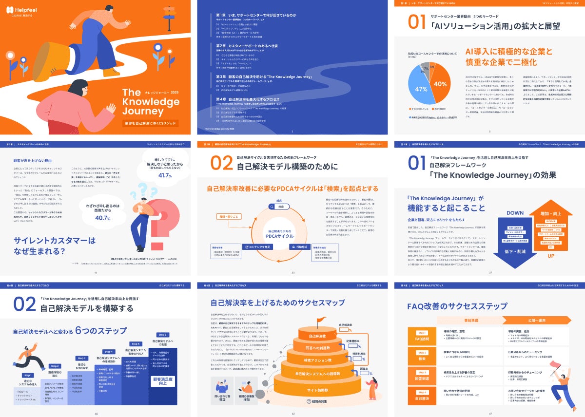 株式会社Helpfeel(京都府京都市、代表取締役/CEO:洛西 一周、以下「当社」)は、500サイト以上(※1)の伴走サポートを通じて培った知見をもとに、顧客の自己解決率を最大化する独自のメソッド「The Knowledge Journey(ナレッジジャーニー)」を発表しました。