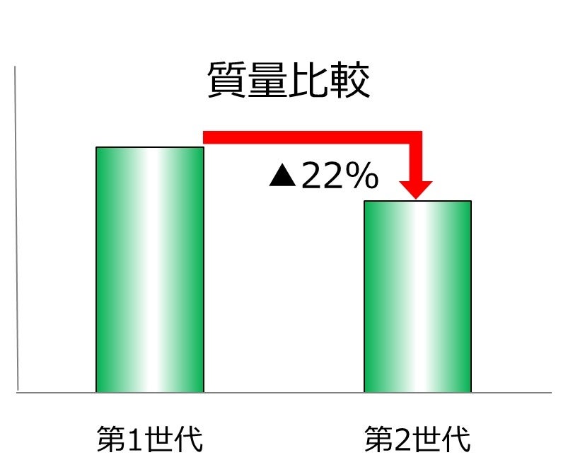各種部品設計を見直し、小型・軽量化。第1世代比▲約22%の軽量化を達成し、環境負荷低減に貢献