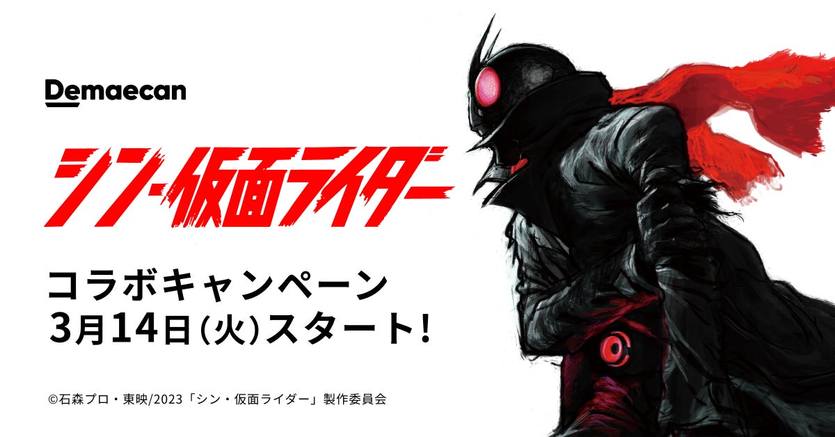 「仮面ライダー」生誕50周年企画作品として、庵野秀明氏が脚本・監督を務める映画『シン・仮面ライダー』の公開を記念した本キャンペーンでは、エントリーいただくと抽選で『シン・仮面ライダー』グッズが当たるプレゼントキャンペーンや、『出前館』を初めてご利用される方へのクーポンの配布を実施いたします。ぜひこの機会に『出前館』をご利用ください。