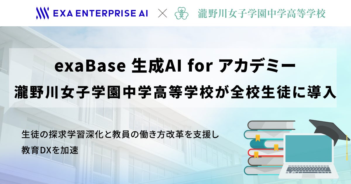 株式会社エクサウィザーズ(本社:東京都港区、代表取締役社長CEO:春田 真、以下 エクサウィザーズ)のグループ会社である株式会社Exa Enterprise AI(本社:東京都港区、代表取締役:大植 択真、以下 Exa Enterprise AI)は、学校法人瀧野川女子学園 瀧野川女子学園中学高等学校(所在地:東京都北区、理事長・校長 山口 治子、以下瀧野川女子学園)が、教育機関向けに最適化された生成AIサービス「exaBase 生成AI for アカデミー」を導入したことをお知らせします。2024年度に実施した活用検証を経て、2025年度より全校生徒において本格的に利用を開始しました。当社は、瀧野川女子学園におけるAI活用を支援してまいります。
