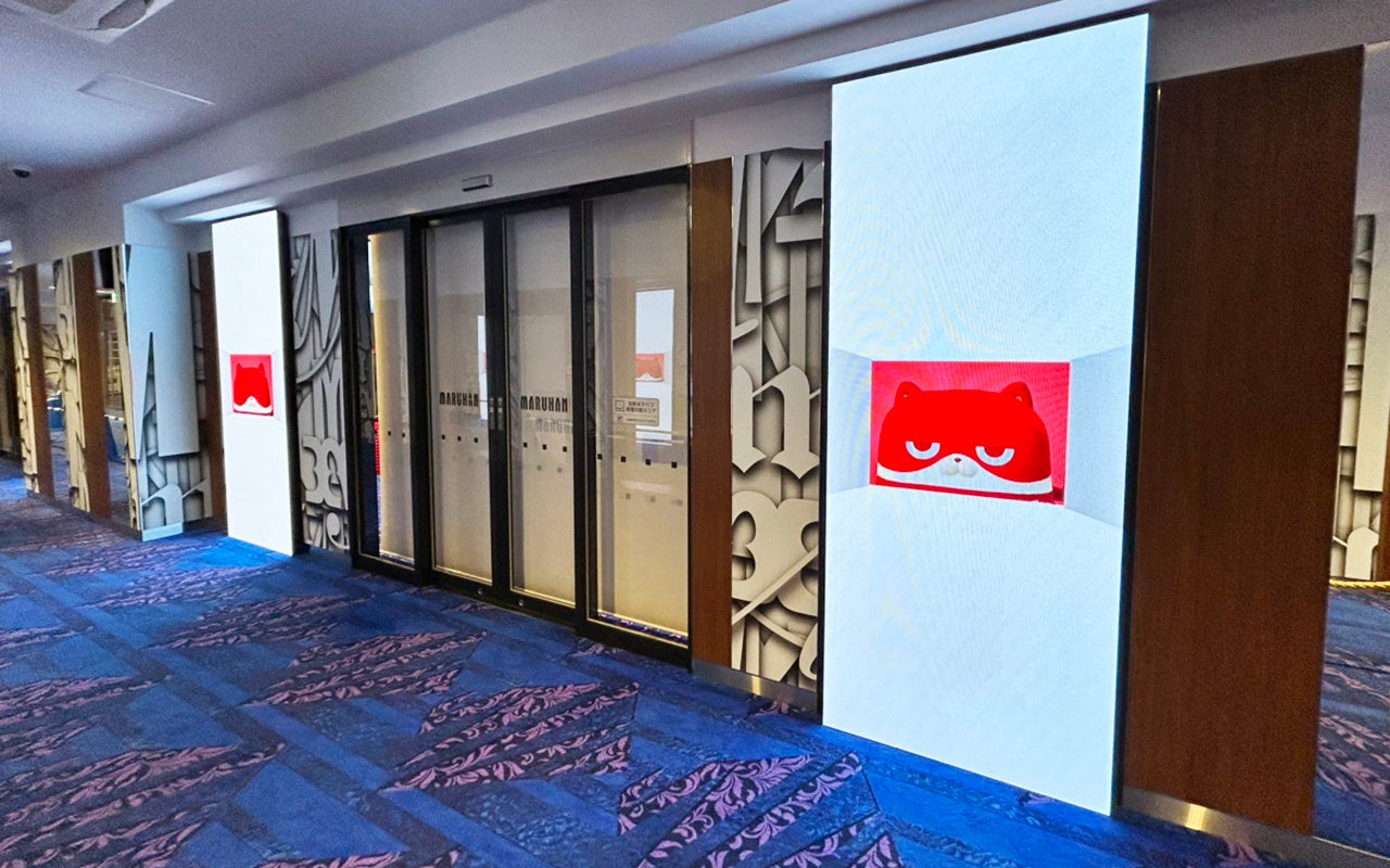 レストルームに設置したLEDビジョンは、3D映像の放映がなされています。そのため、立体的な映像演出で驚きを与えるだけでなく、様々なクリエイティブで雰囲気を演出することが可能になりました。