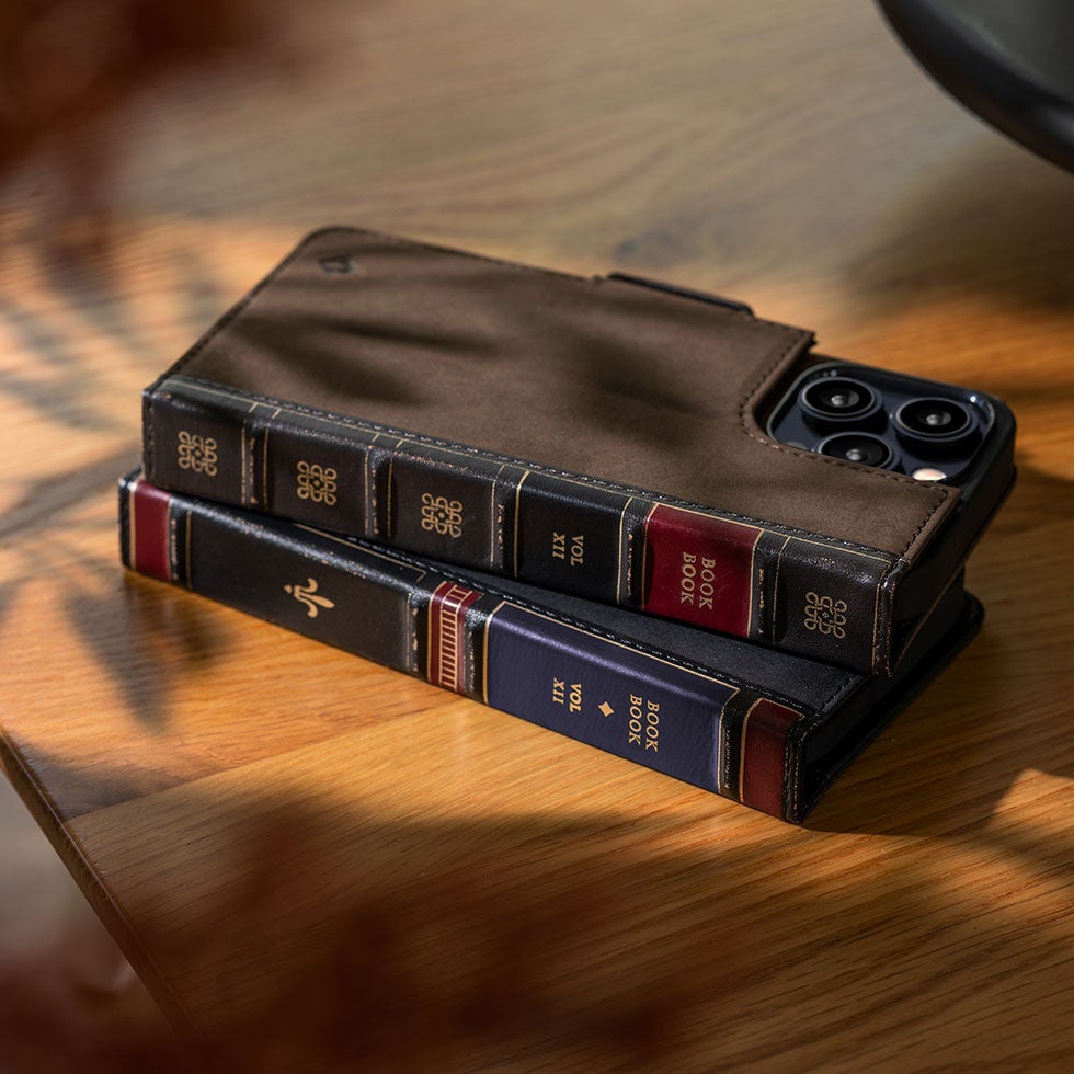 人気のBookBookがiPhone 15シリーズに対応。フルグレイン本革レザーを使用したヴィンテージ洋書風ハードカバーで、リアル財布機能や、折りたたみ式ディスプレイスタンド機能を搭載。