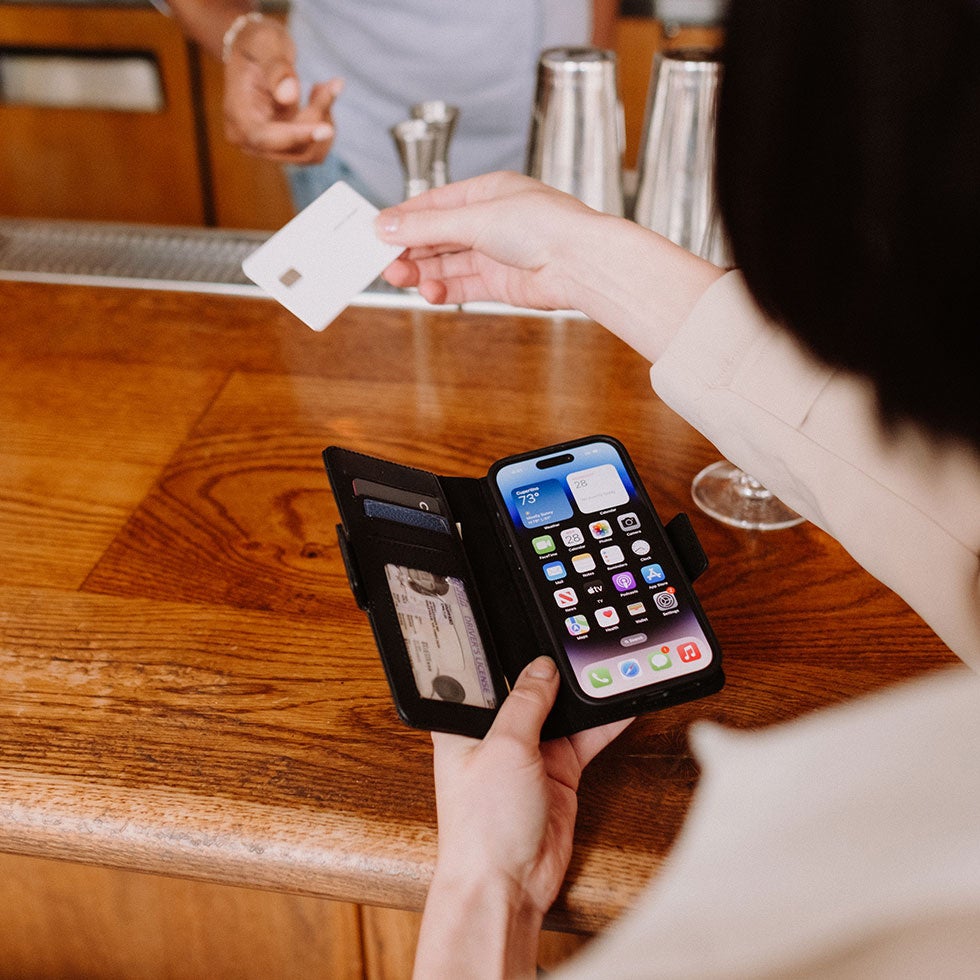 最新作のiPhone15シリーズモデルでは、本革仕上げのケースがMagSafe用に再設計されました。BookBookユーザには、すっかりお馴染みですが、カバーの内側には運転免許証やカード、紙幣を収納できるリアル財布機能のポケット付き、さらにはハンズフリーで動画などを見られるようにハードカバーを折りたたんでディスプレイスタンドにすることができます。また、BookBookのマグネット式クロージャーを強化し、保護レベルをさらに高めました。さあ、iPhoneをまるで本を外に持ち出す時のようにポケットに入れ、お出かけはいかかですか。