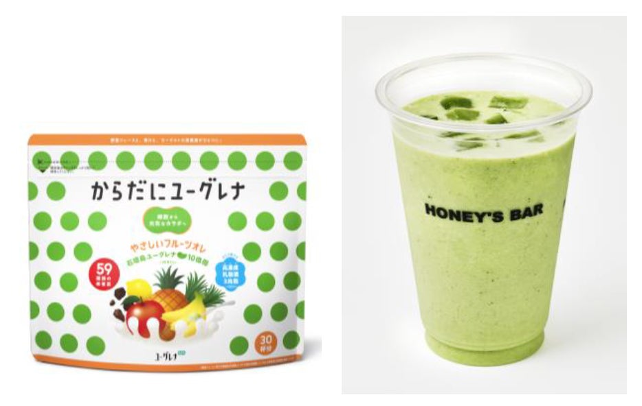 ユーグレナ社とJR東日本クロスステーション社は、外出時に美味しく手軽にミネラルやビタミンなどの栄養を補給できるオリジナルコラボドリンクとして、59種類の豊富な栄養素を含む石垣島ユーグレナに、4種のフルーツと黒糖の甘味を加え、小さなお子様から大人までご好評いただいている「からだにユーグレナ やさしいフルーツオレパウダー」を使用した新ドリンクメニュー『石垣島ユーグレナ×キウイヨーグルト』を共同開発し、駅のジューススタンド「ハニーズバー」にて発売いたします。尚、ご購入いただいた方には、「からだにユーグレナ やさしいフルーツオレパウダー」のサンプルをプレゼントいたします。