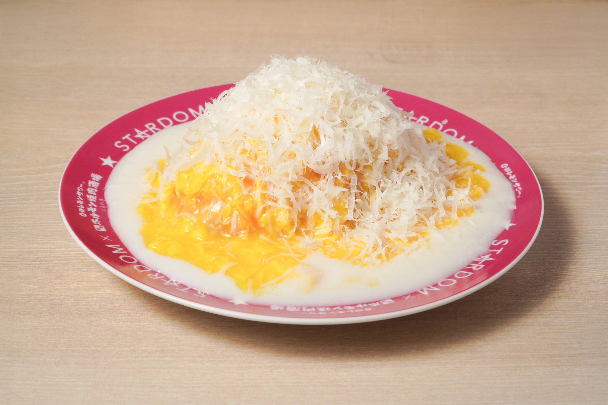 ぽいトロオムライスこと…ぽいトロオムライスです!とろとろの黄色いオムライスにふわふわ真っ白なチーズをたくさんかけたその見た目はまさしくオムライス界の妖精!ハイスピード・フェアリー なつぽい選手をイメージした、口どけ最速のオムライスみんな食べてね〜!