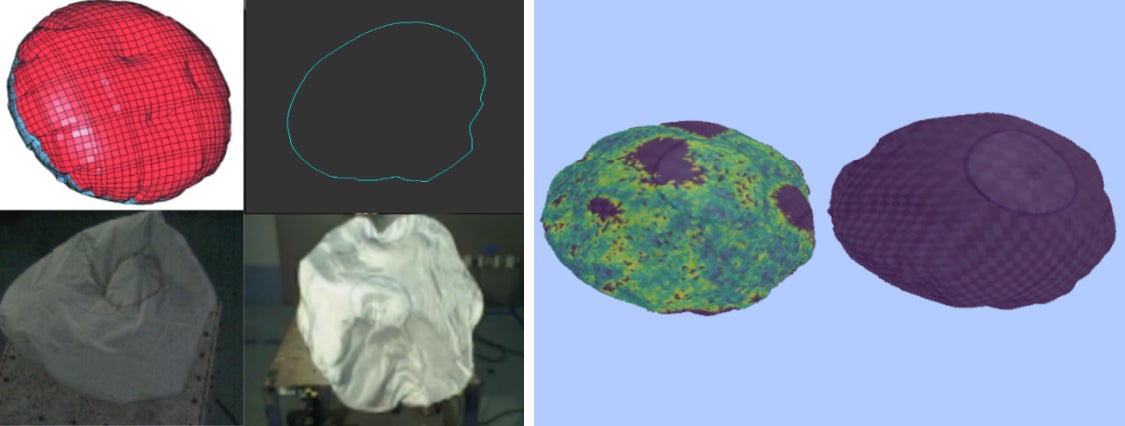 通常のカメラでは挙動や変形の様子がわかりにくい物体に対して、3次元形状の時間変化を計測/記録し、さらに変形量の解析やCAD/CAEとの比較などを行うことで、製品設計等へのフィードバックを目指しています。