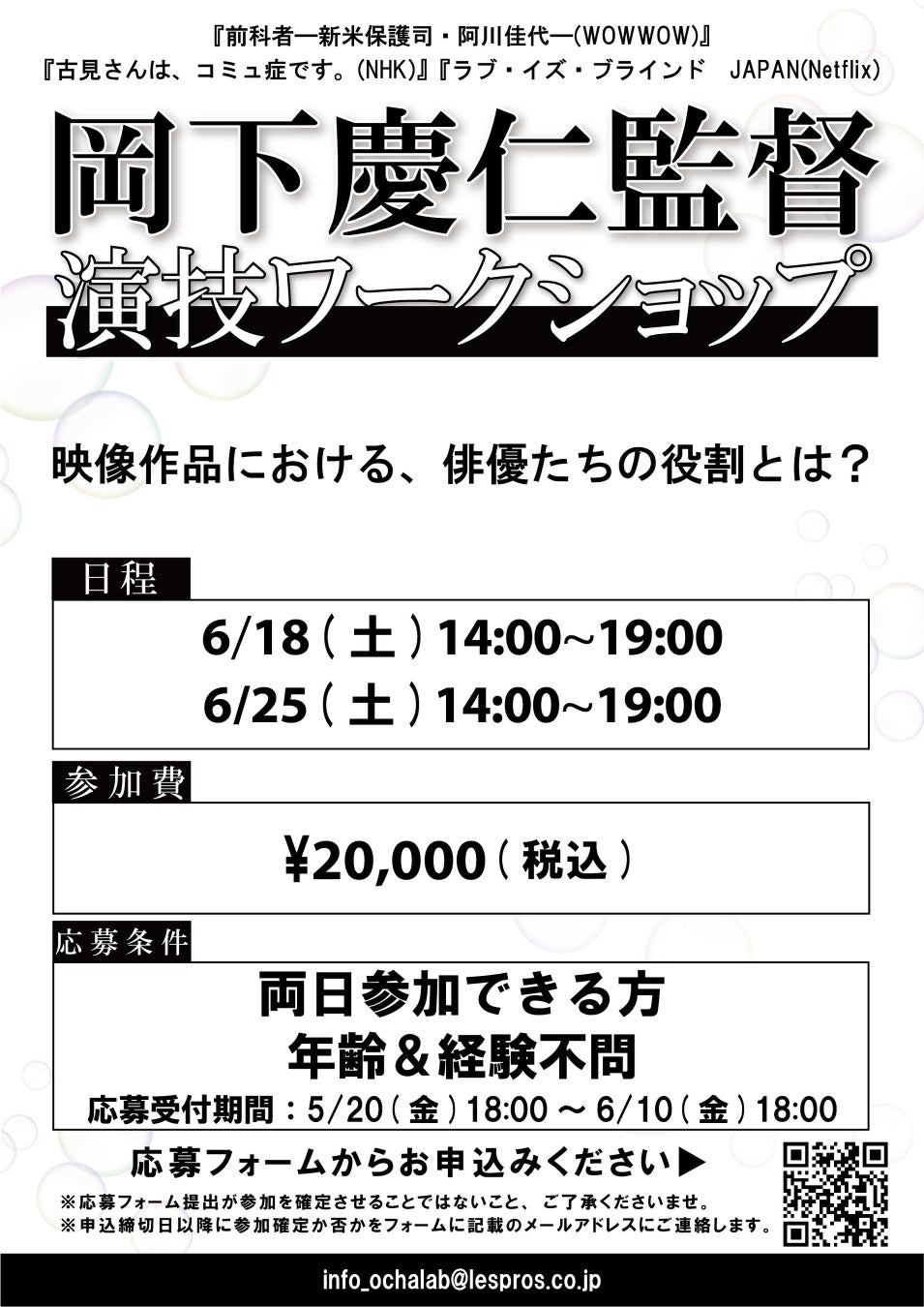嘘だ。人違いでは?と、疑いましたが、ありがたいことに、私が監督したドラマ「前科者―新米保護司・阿川佳代―」を見てオファーして頂いたということだったので、襟を正し、演技ワークショップの講師を引き受けました。