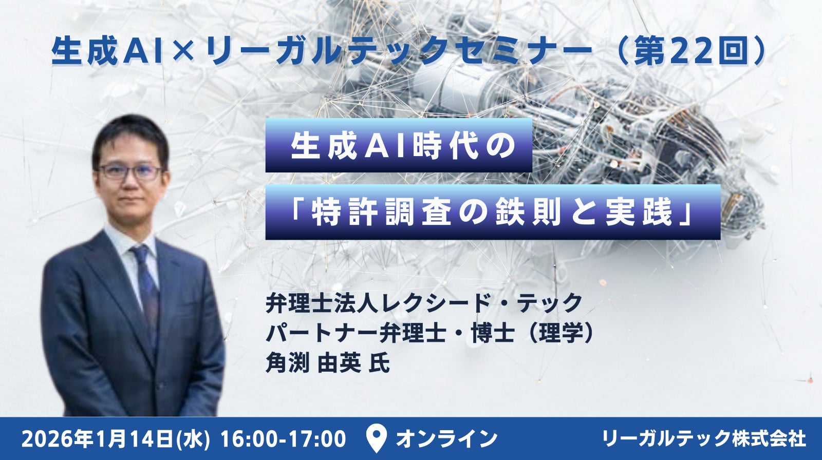 【2026年1月14日(水)16時開催@オンライン】知財×AIリーガルテックセミナー(第22回)