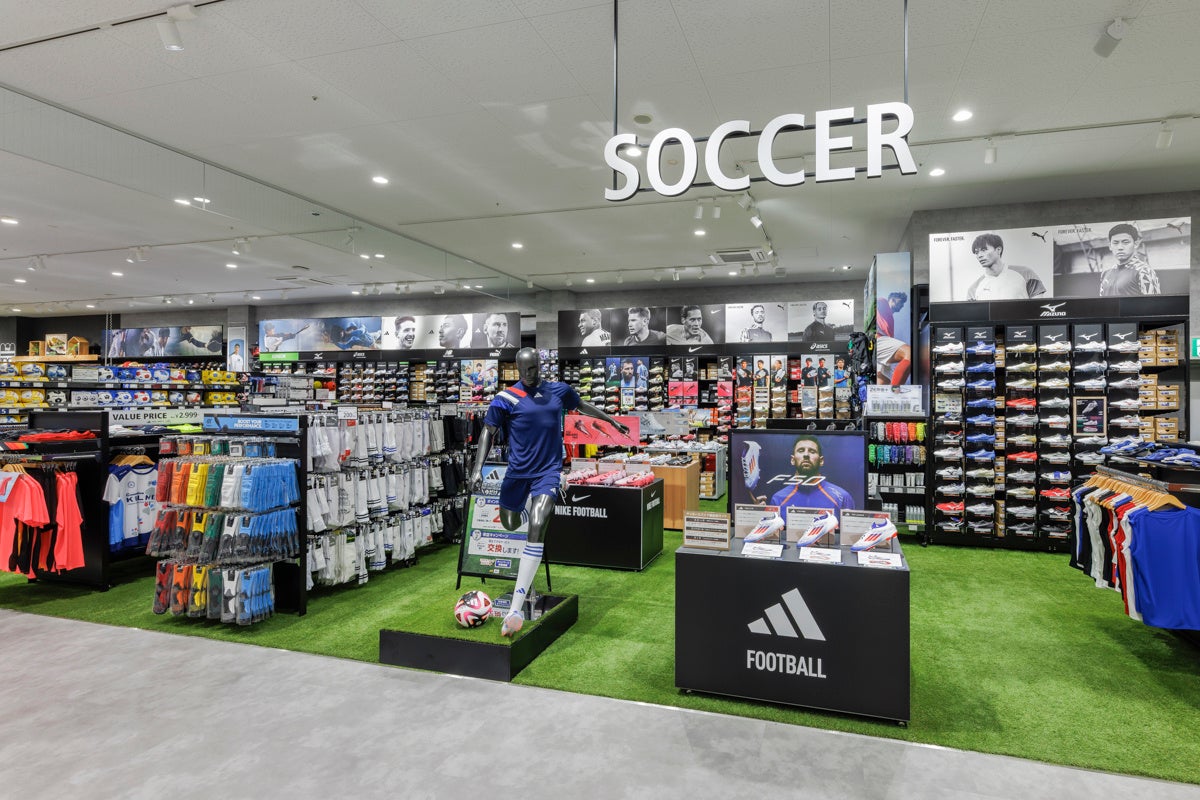その他、スポーツウェアやサッカー、バスケットボール、野球など競技スポーツアイテムも商品豊富に展開し、魅力満点の新店舗となっております。