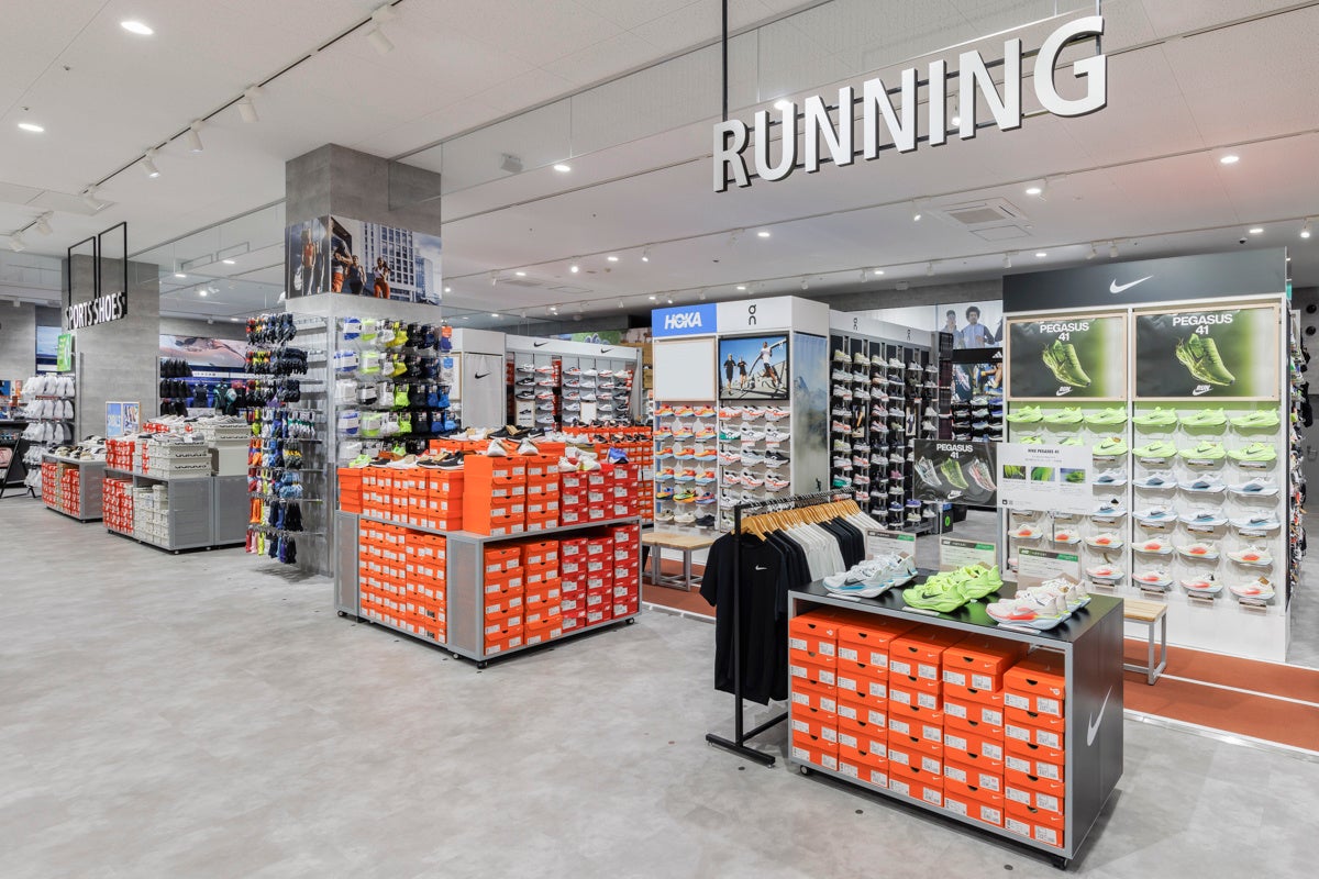 スポーツデポエミテラス所沢店の特徴としては、ランニング、スニーカー、アウトドアウェアの強化が挙げられ、取り扱いブランドや商品、売り場までこだわりを詰め込んでおります。