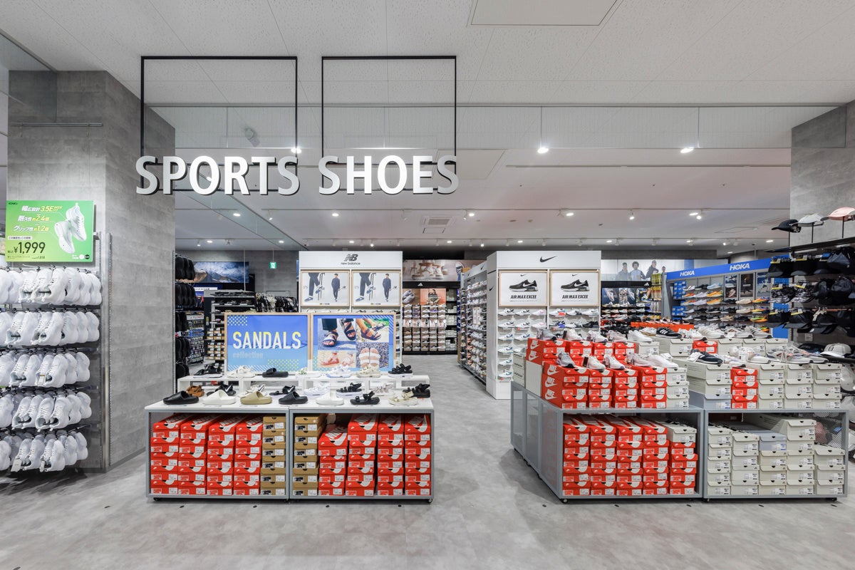 日常のライフスタイルシーンに使用できるスニーカーやウェアから本格的なスポーツを楽しめる競技スポーツアイテム、さらにアウトドアまでが揃うスポーツ総合専門店となっております。