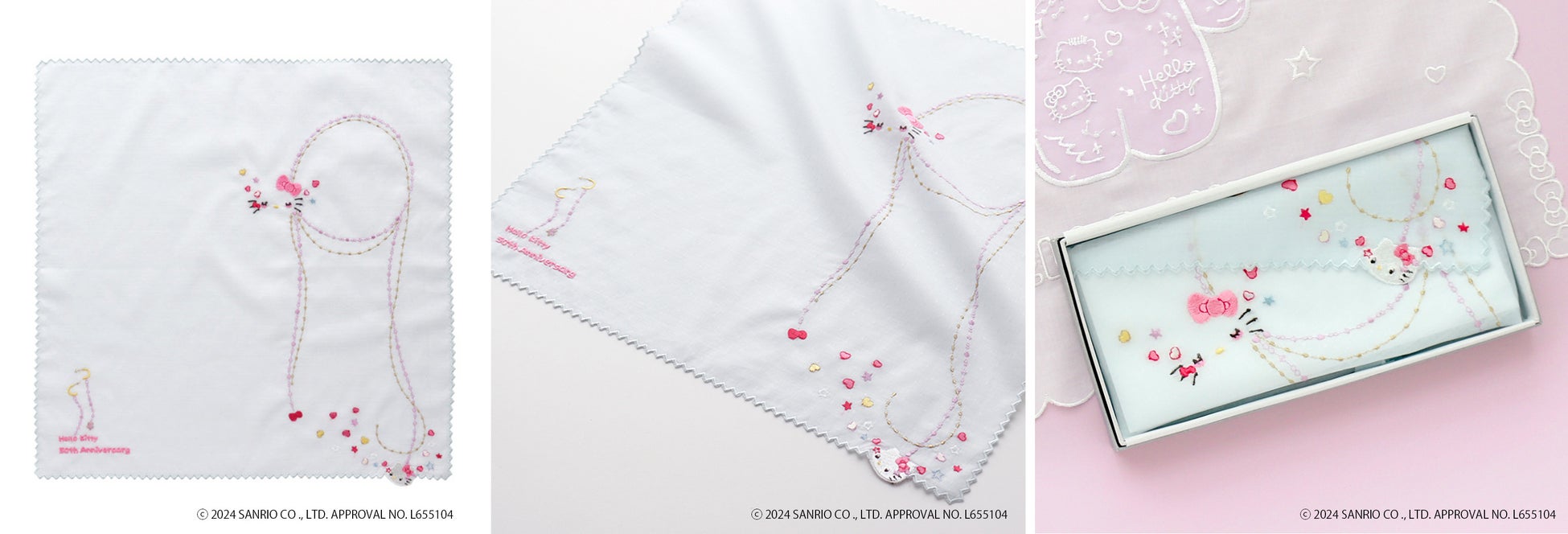 「ハローキティ」誕生50周年を記念して、CLASSICS the Small Luxuryから、初のコラボレーションハンカチーフを発売