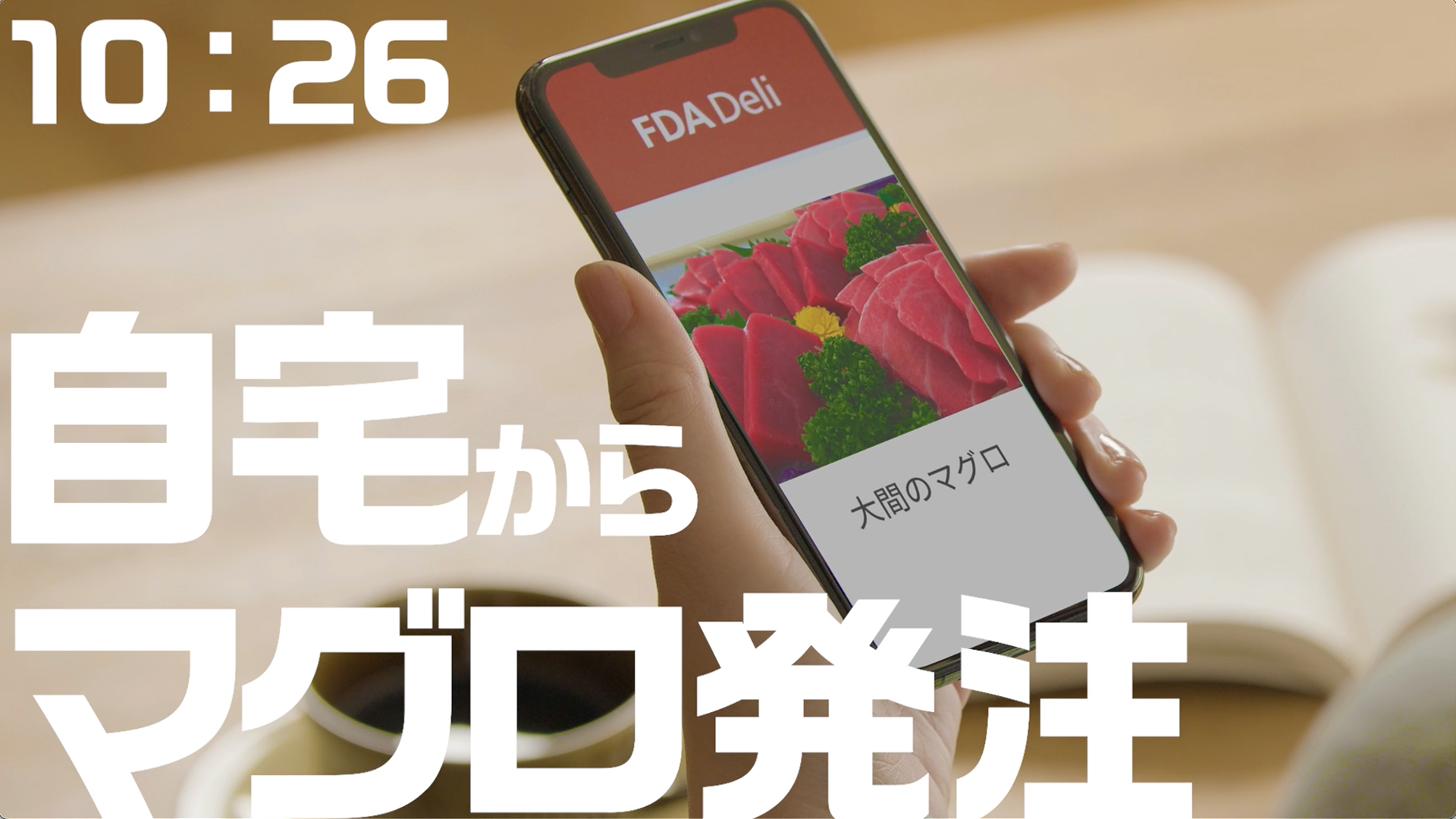『FDA Deli』スペシャルムービーは、まるで青森に行ったかのように新鮮でおいしいマグロを自宅で楽しめるというストーリーの動画です。この動画では、名古屋の自宅からの注文を受け、青森の漁師さんが4分後にマグロを準備します。その後、FDAの直行便を利用して青森空港から名古屋(小牧)空港、さらに自宅へとマグロをあっという間にお届けする様子を体感いただけます。