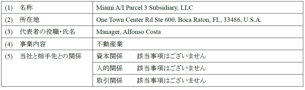 当社初の米国におけるプロジェクトとして、現地デベロッパーであるFalcone Group, LLC(本社:フロリダ州)が主導するMiami Worldcenterにおける区画の開発用地を取得いたしましたので、あわせてお知らせいたします。