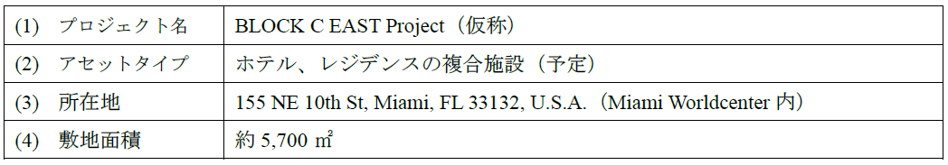 以上の当社の事業基盤および市場環境を総合的に勘案し、当社は米国市場への参入を決定し、その進出の初弾としてマイアミ中心部でホテルとレジデンスを主とした複合開発プロジェクトに着手いたしました。
