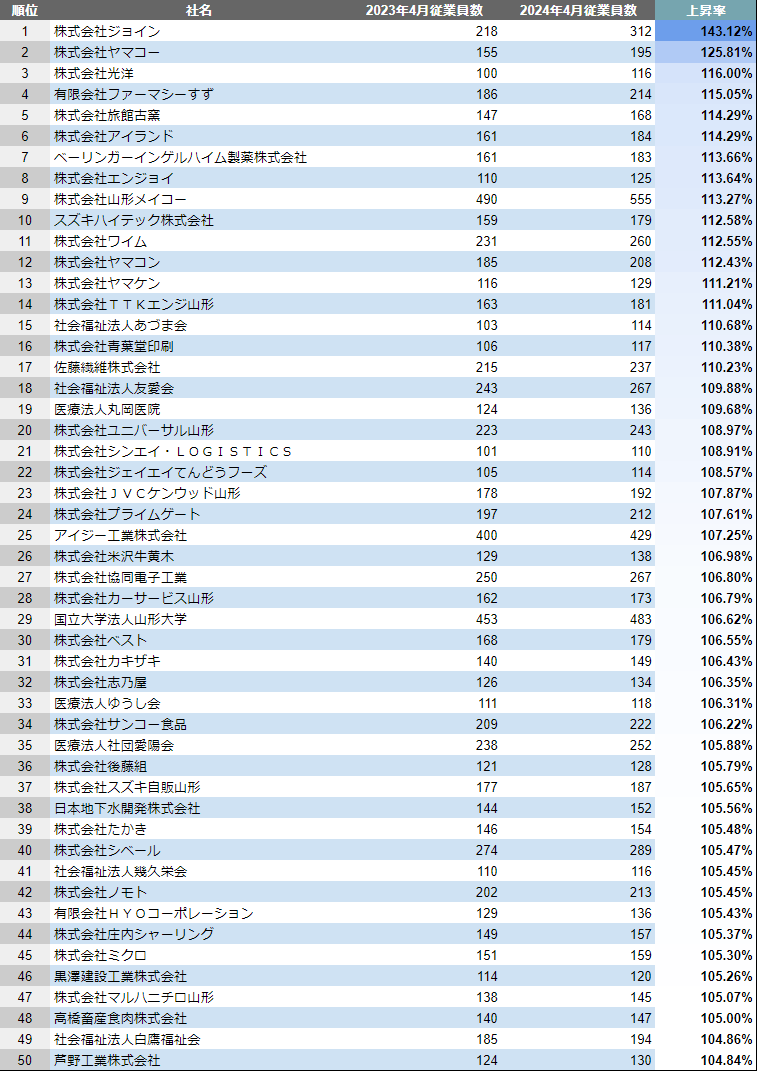 山形県×成長企業ランキングTOP50について