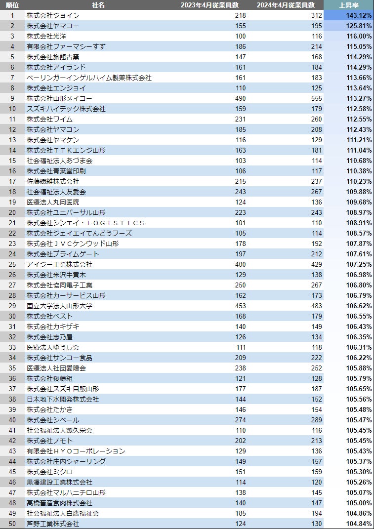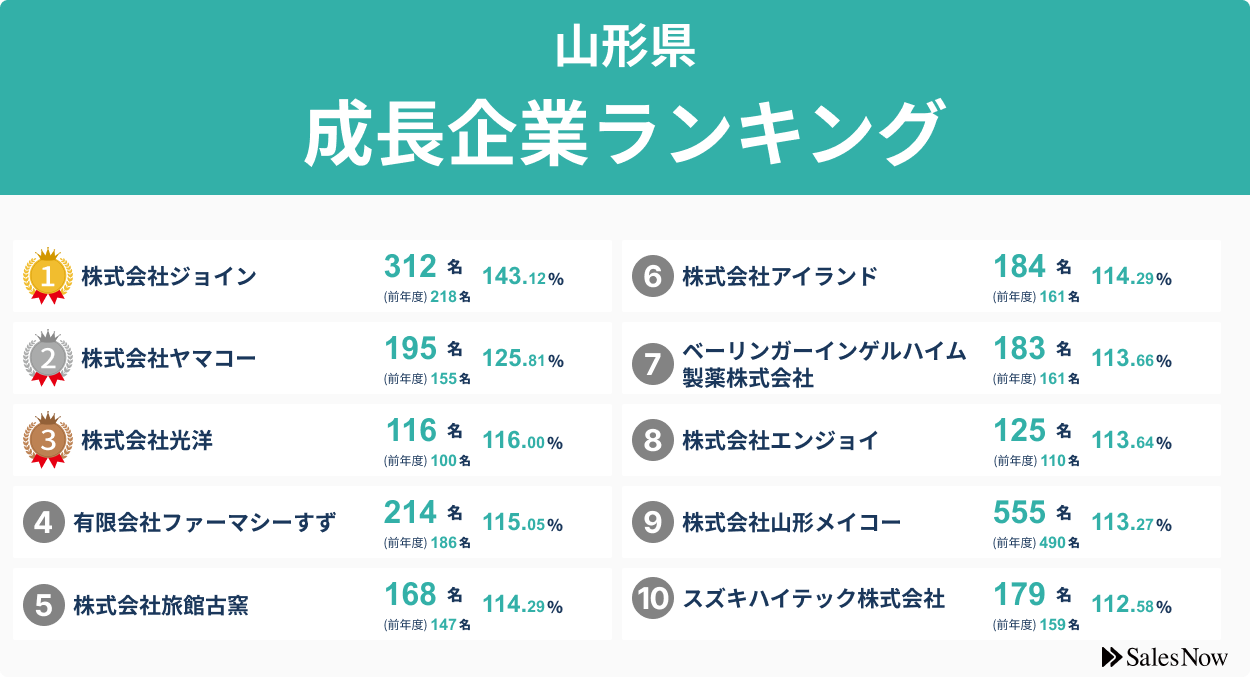 【山形県】成長企業ランキングTOP50!/SalesNow DBレポート