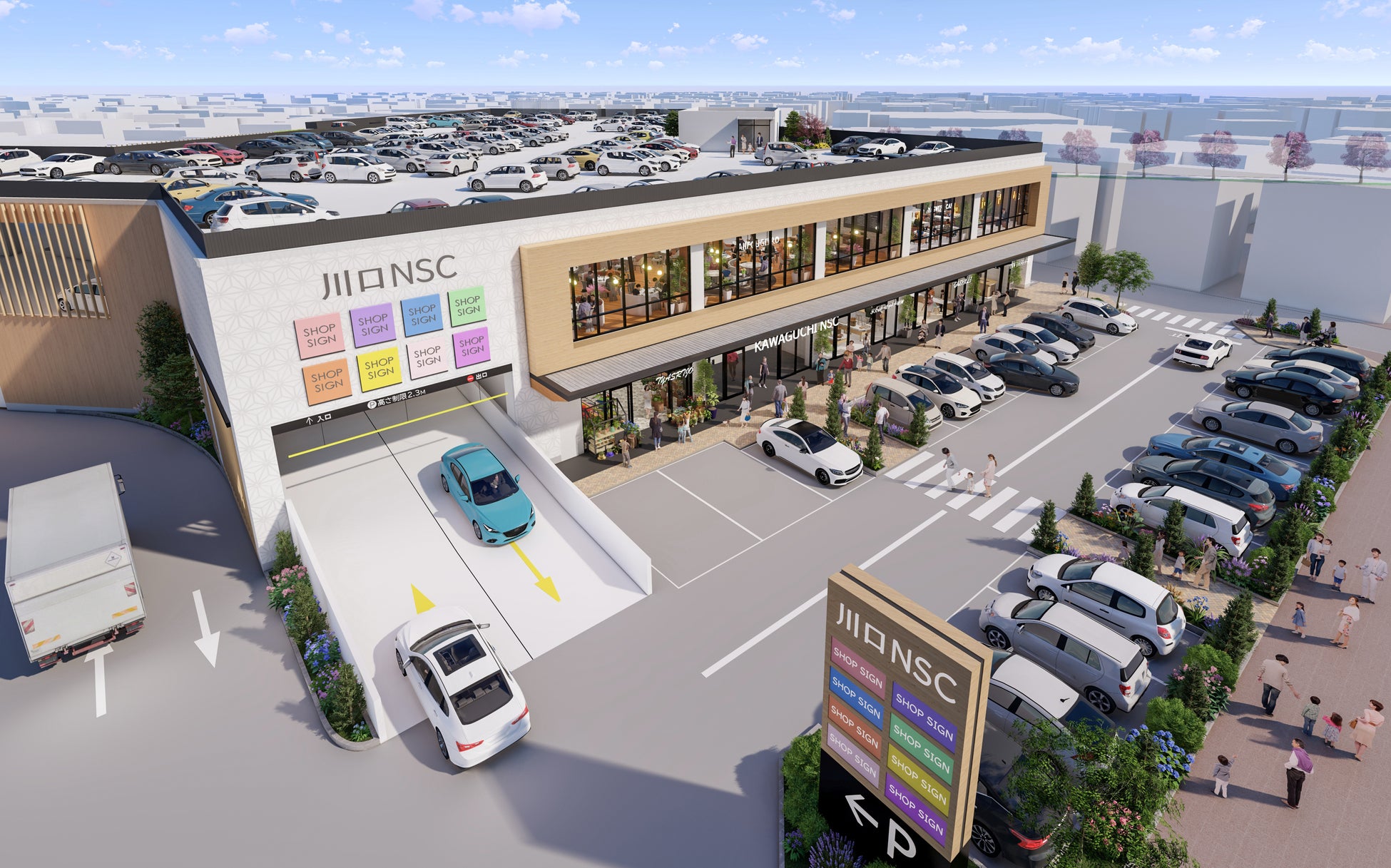 スーパーマーケットやドラッグストア、100円ショップといった日常使いしていただける店舗のほか、飲食店舗、習い事教室など子育て世代向け店舗、多世代の健康を支えるクリニック等で構成し、地域の暮らしを支えます。