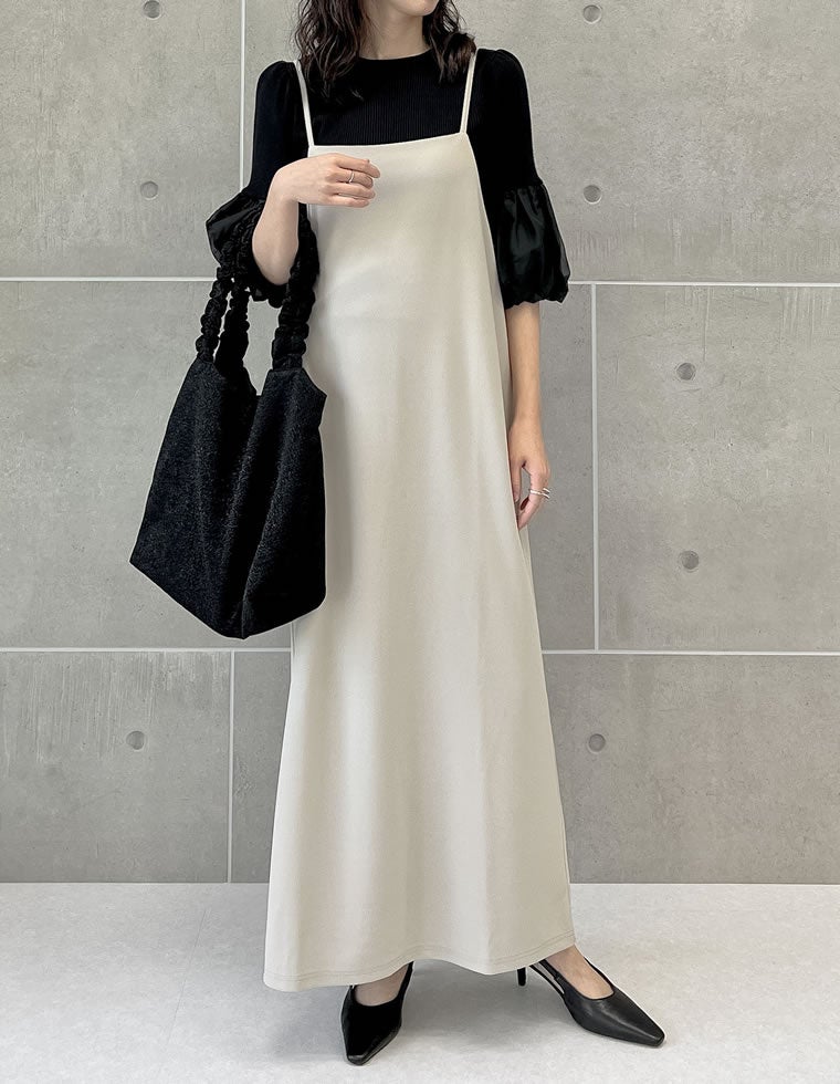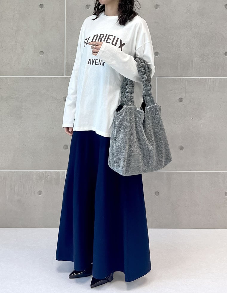 シンプルなコーデ合わせで、アクセントになるキラキラのラメ生地も魅力。