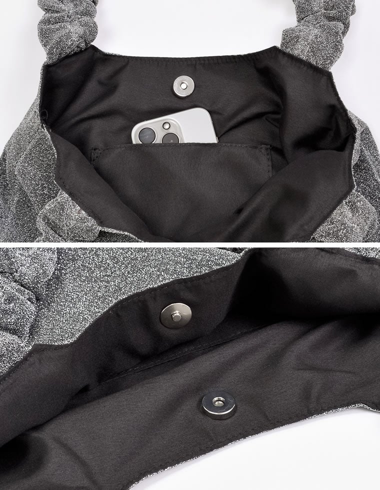 モードと可愛さを兼ね備えた、ラメ生地のフリルハンドバッグが登場。