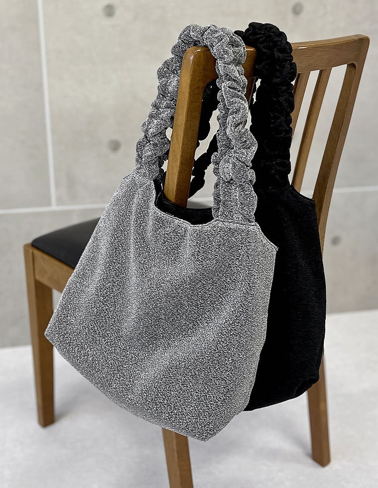 クシュクシュとフリルのように仕上げたハンドル部分のデザインが、フェミニンな印象をプラス。