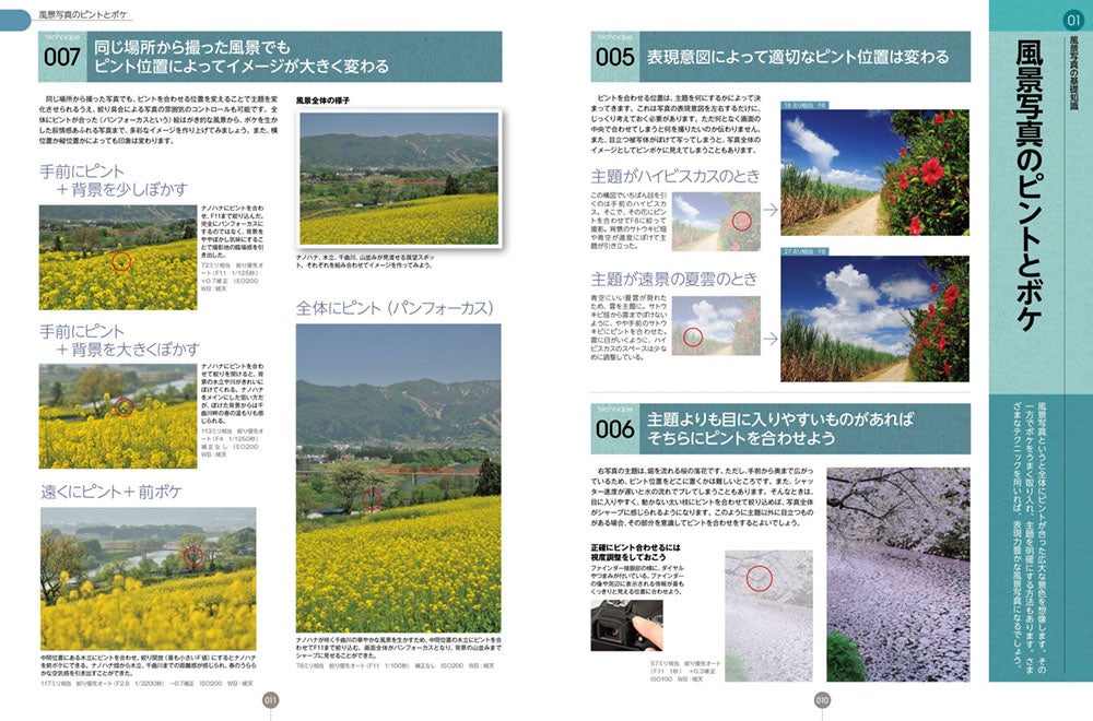 基礎知識から機材の使い方、被写体別撮影テクニックや四季の表現方法などを解説しています。