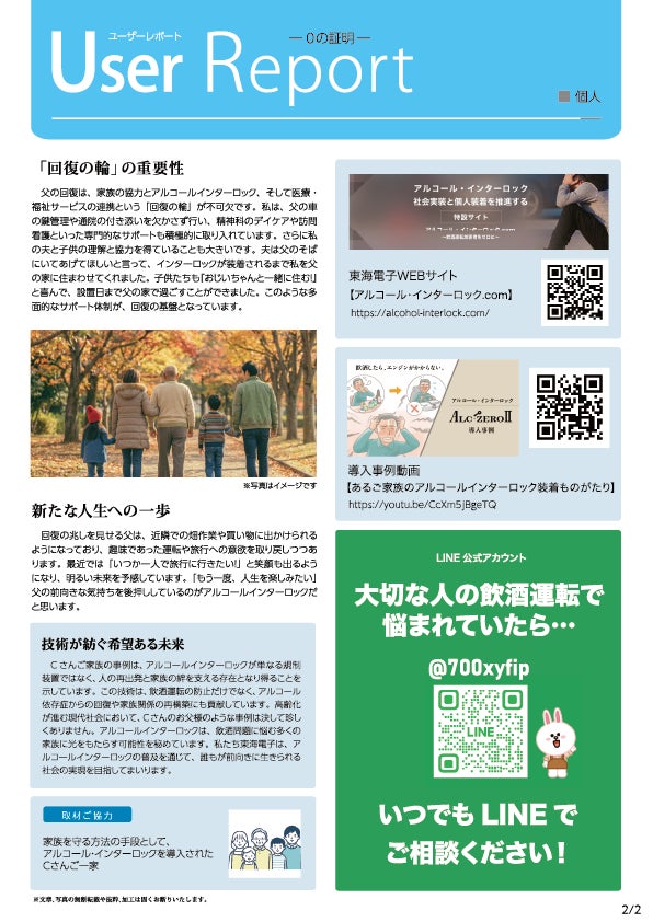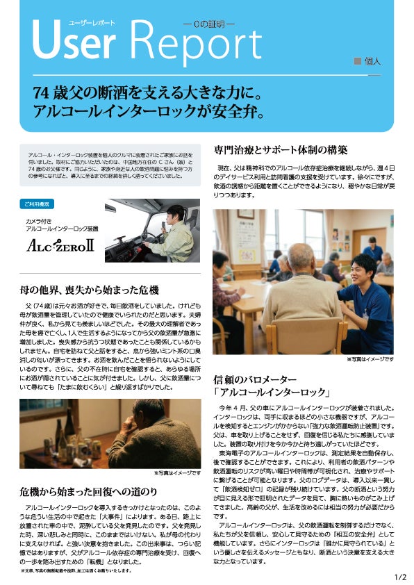 今回公開したレポートでは、アルコール依存症の専門治療を受けている74歳の父親を持つご家族が、アルコールインターロックを導入するまでの経緯や、その後の変化について詳しく紹介しています。