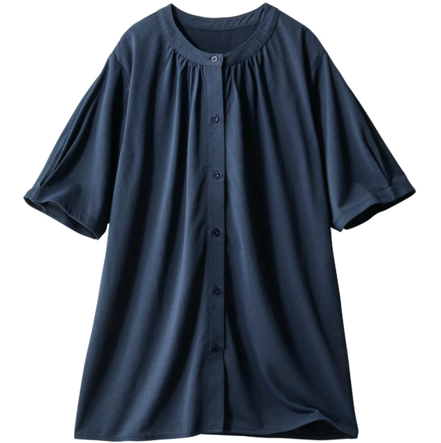 シャツなのにしわになりにくく、サッと羽織るだけで夏のお出かけに取り入れやすい1枚です。