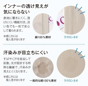 「暑い中アイロンなんてかけたくない」「紫外線対策が欠かせない」「汗をかいたときに汗ジミが気になる」などの声を受け、毎日着る身近な服を通して、暑い夏も心地よく楽しめる素材として、ラクロン®neoが誕生しました。