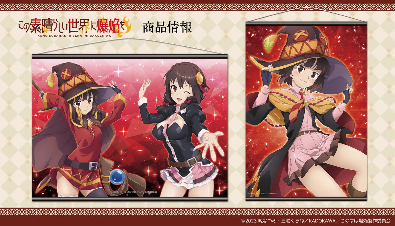 アニメ「この素晴らしい世界に爆焔を!」Tシャツ、B2タペストリー、キャラクターラバーマットの受注を開始!