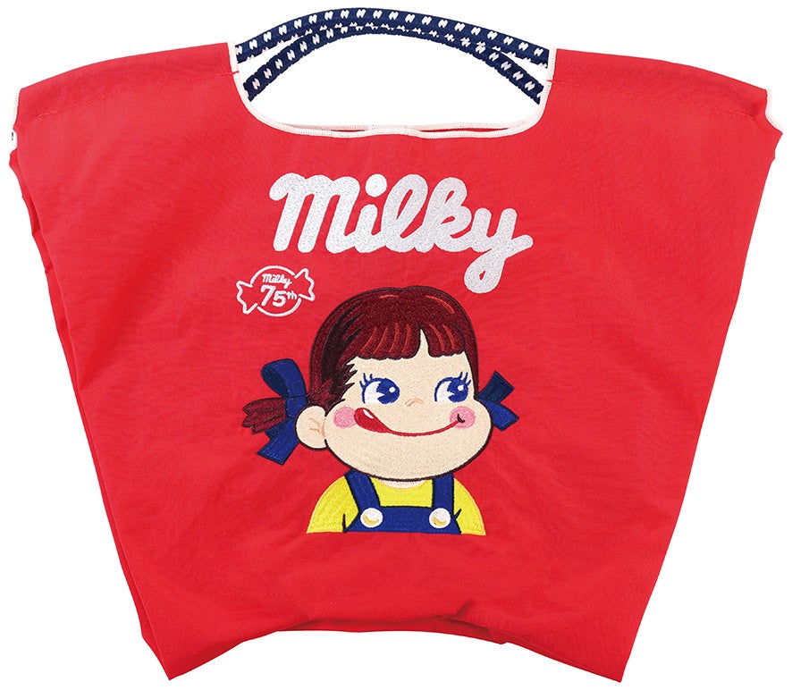 Ball&Chainとペコちゃんのコラボ第5弾となる今回は、「ミルキー」発売75周年を記念し、「ミルキー」のパッケージをイメージしたオリジナルデザインです。レッド、アイボリー、デニムの3色展開で、デニムは不二家でしか手に入らない限定カラー。西洋菓子舗 不二家 銀座三越店及び三越伊勢丹オンラインストアにて、数量限定で販売いたします。