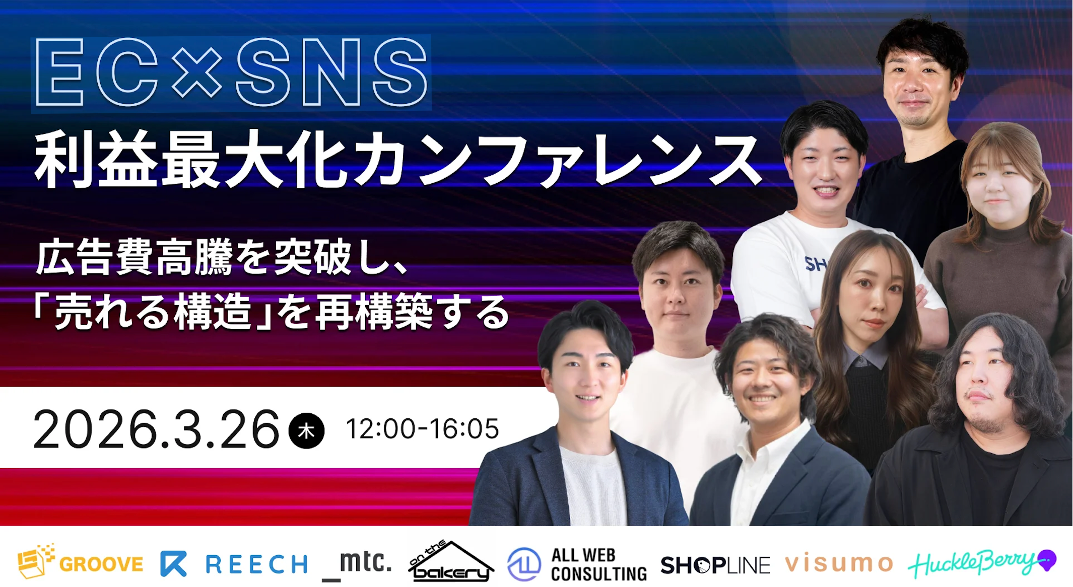 株式会社on the bakery(本社:神奈川県横浜市)は、2026年3月26日(木)にオンラインで開催される「EC×SNS利益最大化カンファレンス」に登壇することをお知らせします。株式会社GROOVE主催で、参加費は無料です。