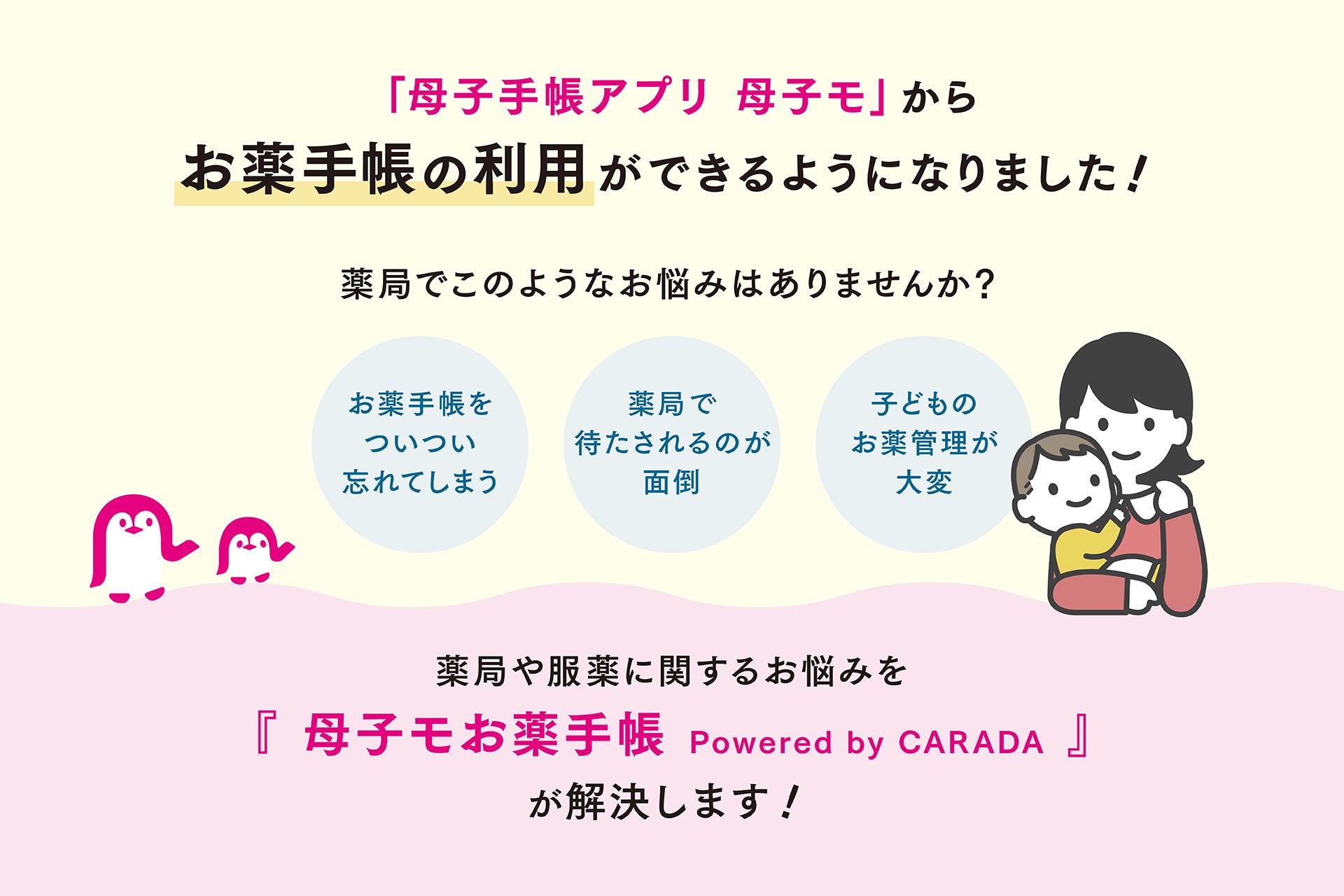 母子モ株式会社(本社:東京都新宿区、代表取締役:宮本 大樹、以下「母子モ」)と株式会社エムティーアイ(東京都新宿区、代表取締役社長:前多 俊宏、以下「エムティーアイ」)は、5月13日(火)より、母子モが運営する母子手帳アプリ『母子モ』に、エムティーアイの電子お薬手帳サービス「母子モお薬手帳 Powered by CARADA(以下、「母子モお薬手帳」)」の提供を開始しています。