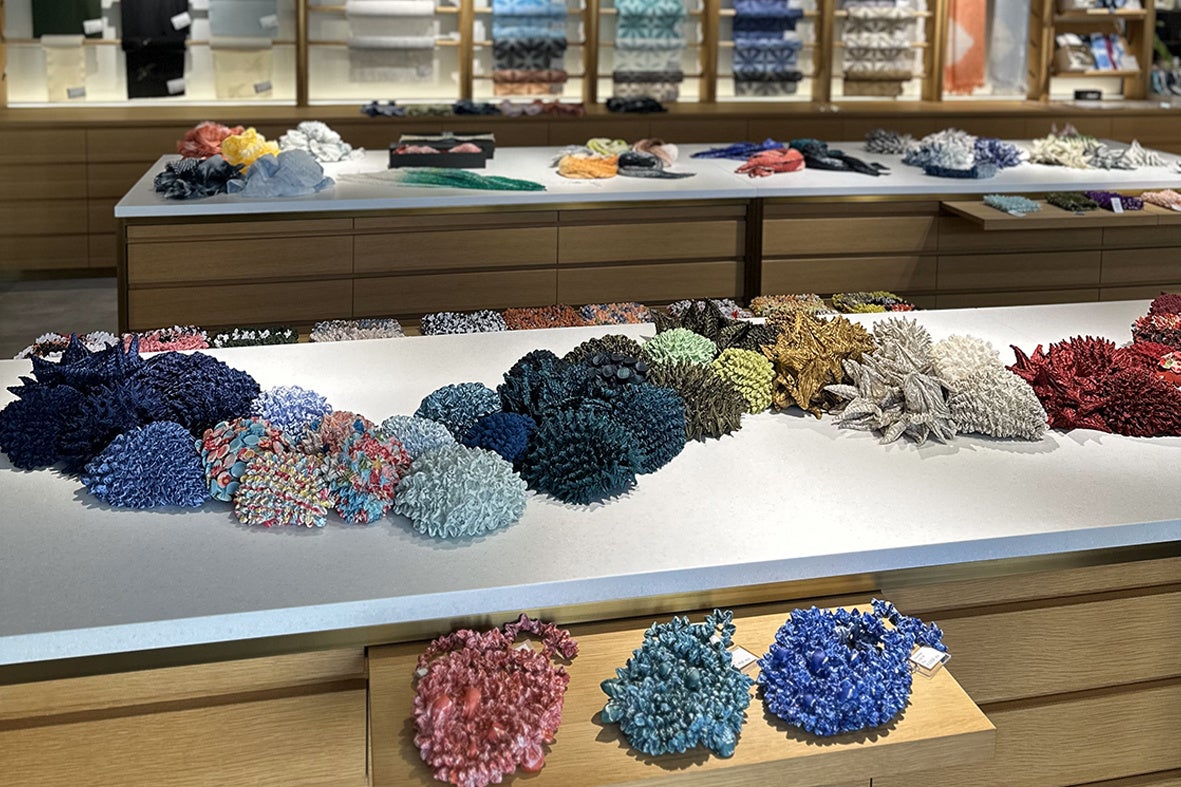 1923年に創業したアンドウ株式会社は、「京鹿の子絞」を中心とした絞り染めから始まり、現在は熟練の技から生まれる製品をはじめ、絞りの伝統的な技術を現代の生活に自然に取り入れることのできるアイテムを展開。創業100周年の2023年にオープンしたコンセプトショップでは、伝統的な和の手仕事を身近に、そして手軽に体験していただきたいとの想いから、絞り染めのワークショップを開催。20色ものカラーバリエーションから、初めての方でも簡単にオリジナル商品作りを楽しめます。