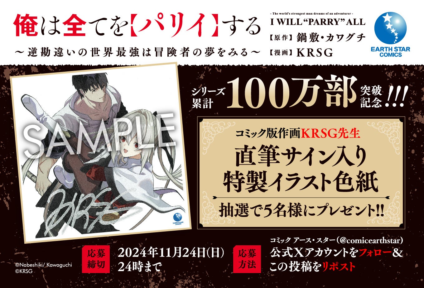 このたび、株式会社アース・スター エンターテイメント(東京都・品川区)が刊行する【アース・スターノベル】と【アース・スター コミックス】の人気作品『俺は全てを【パリイ】する』がシリーズ累計100万部を突破いたしました。