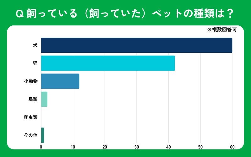 飼っている(または飼っていた)ペットの種類を教えてください。(複数回答可能)