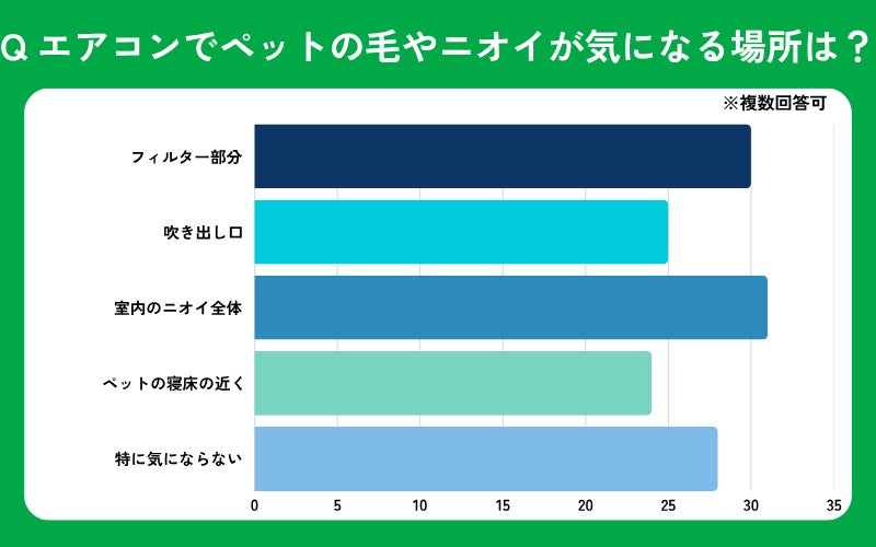 エアコンまわりでペットの毛やニオイが気になる場所は?(複数回答可能)