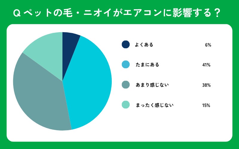 ・50%近くの人が、ペットの毛やニオイがエアコンに「影響がある」と感じている。