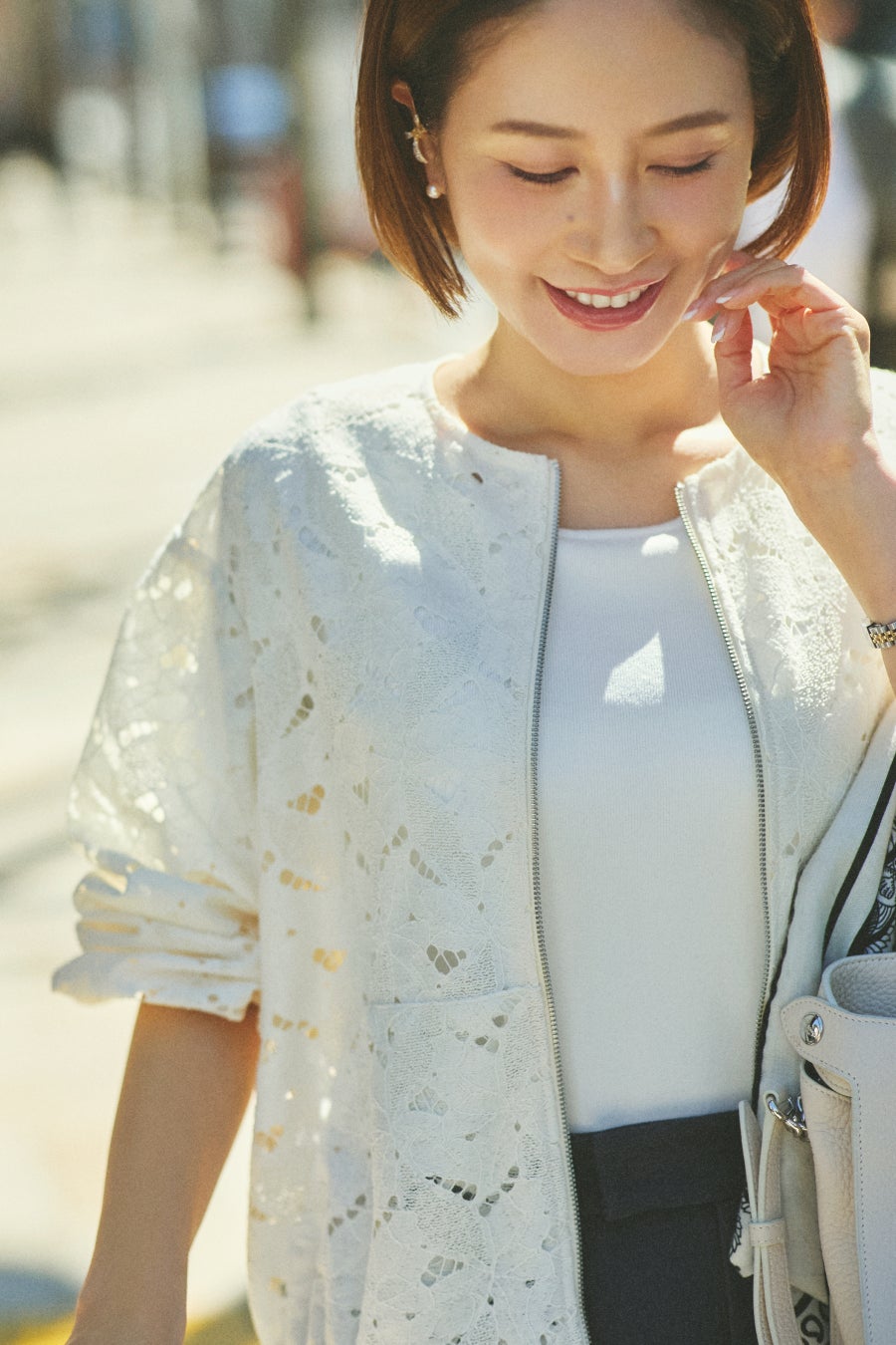 「ひんやり心地よく、日差しや冷房対策にもなる安心感。 お手入れも簡単でシワになりにくいから、忙しい日も気負わず手に取ってしまいます。 『毎日でも着たい』と思える、理想のきちんと感です。」(入江さん)